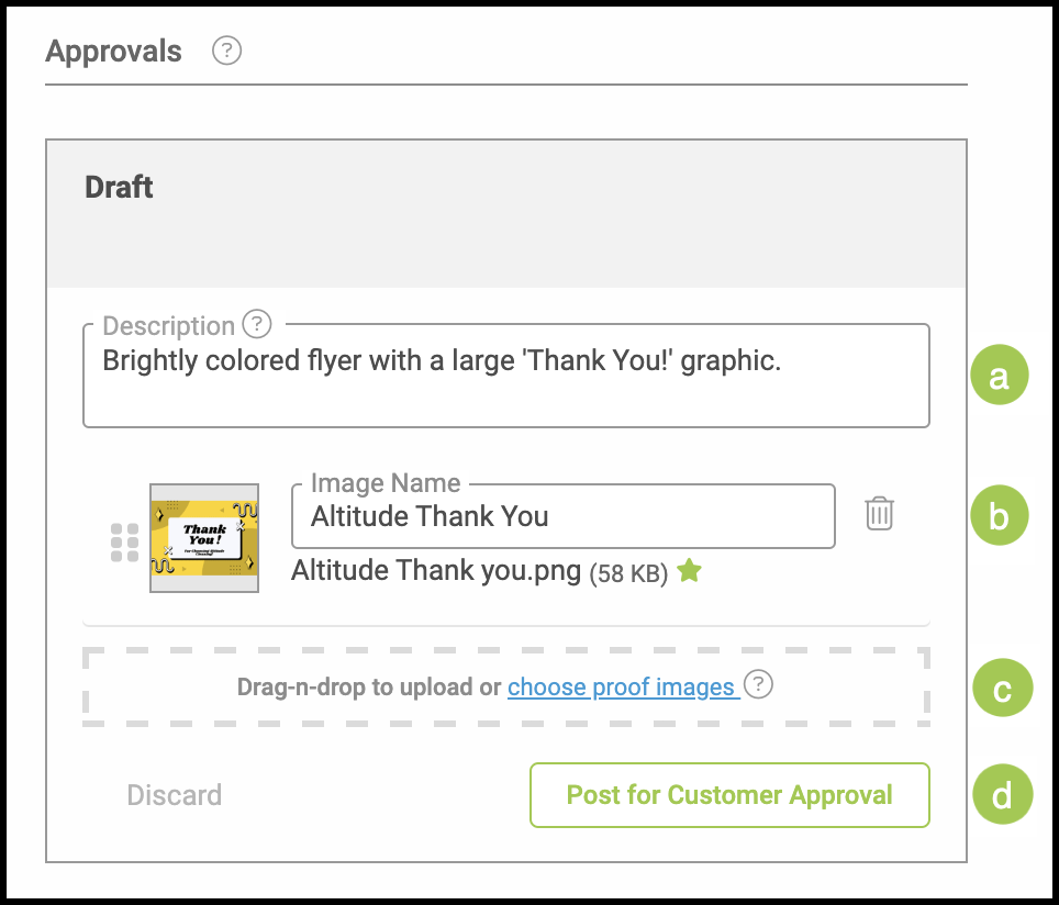 5. Enter an Image Name, if desired. When posted for customer approval, this will show in the Action Required section of the Customer Portal next to the proof image.
