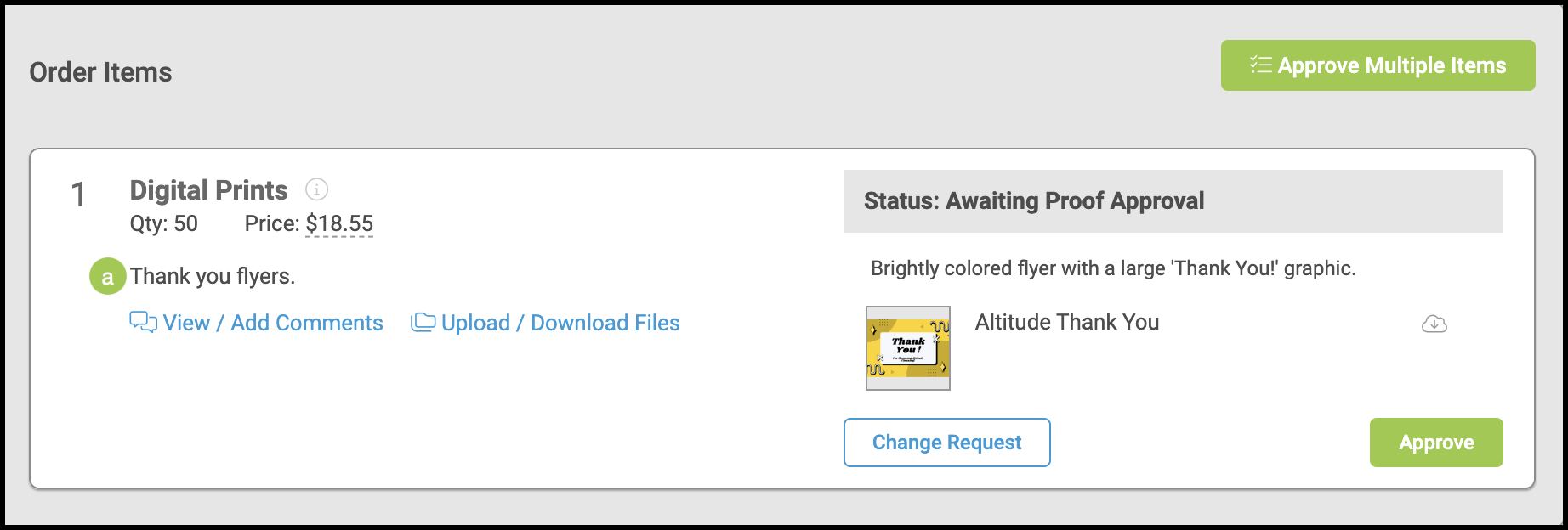 Item Statuses can help alert your customer to information regarding their order by putting their Order or Estimate into the Action Required section of the Customer Portal, in addition to the Open Orders or Open Estimate sections.