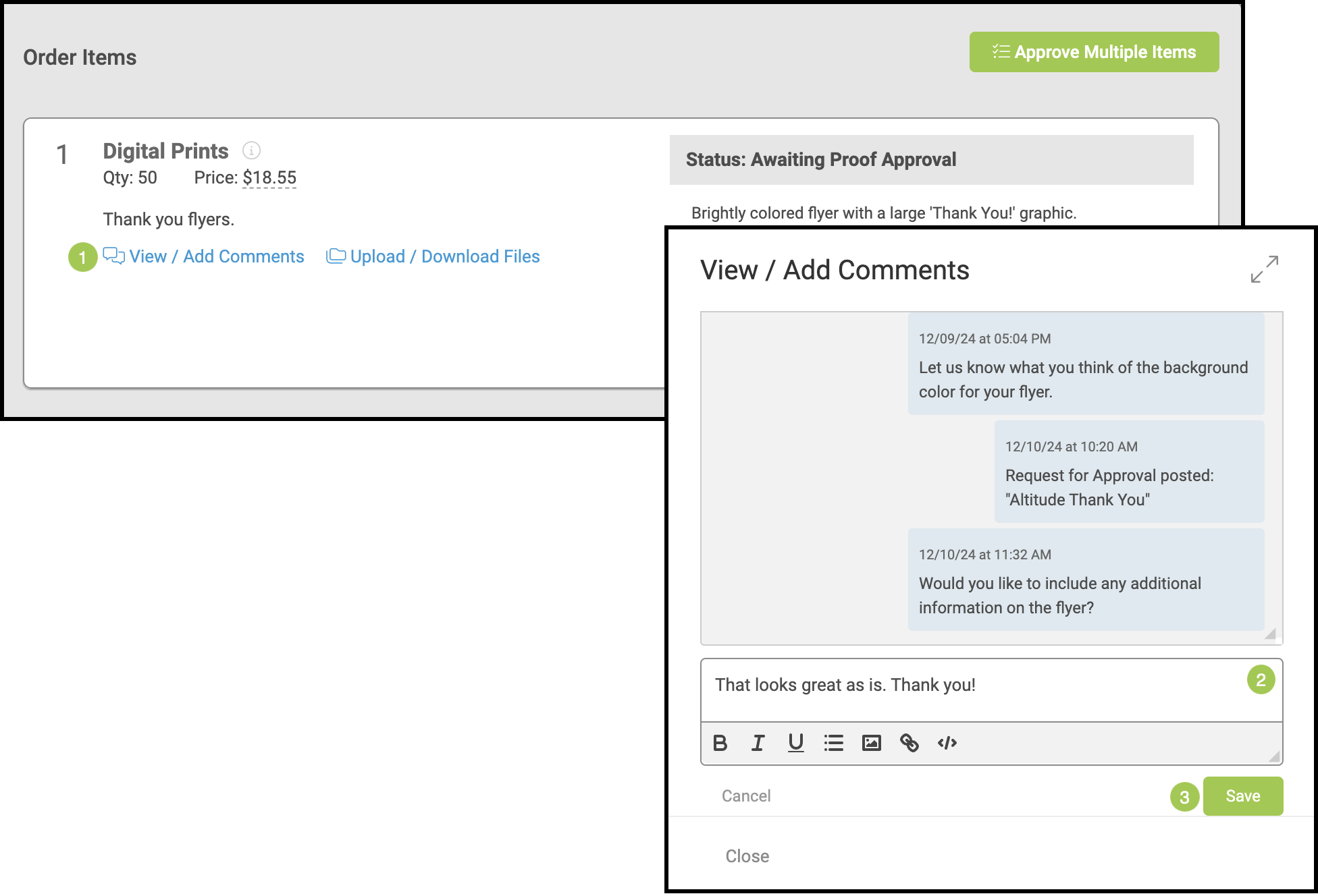 For your customer to view comments and post a reply: