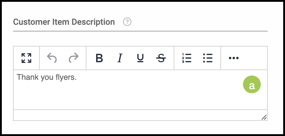 Customer Item Description