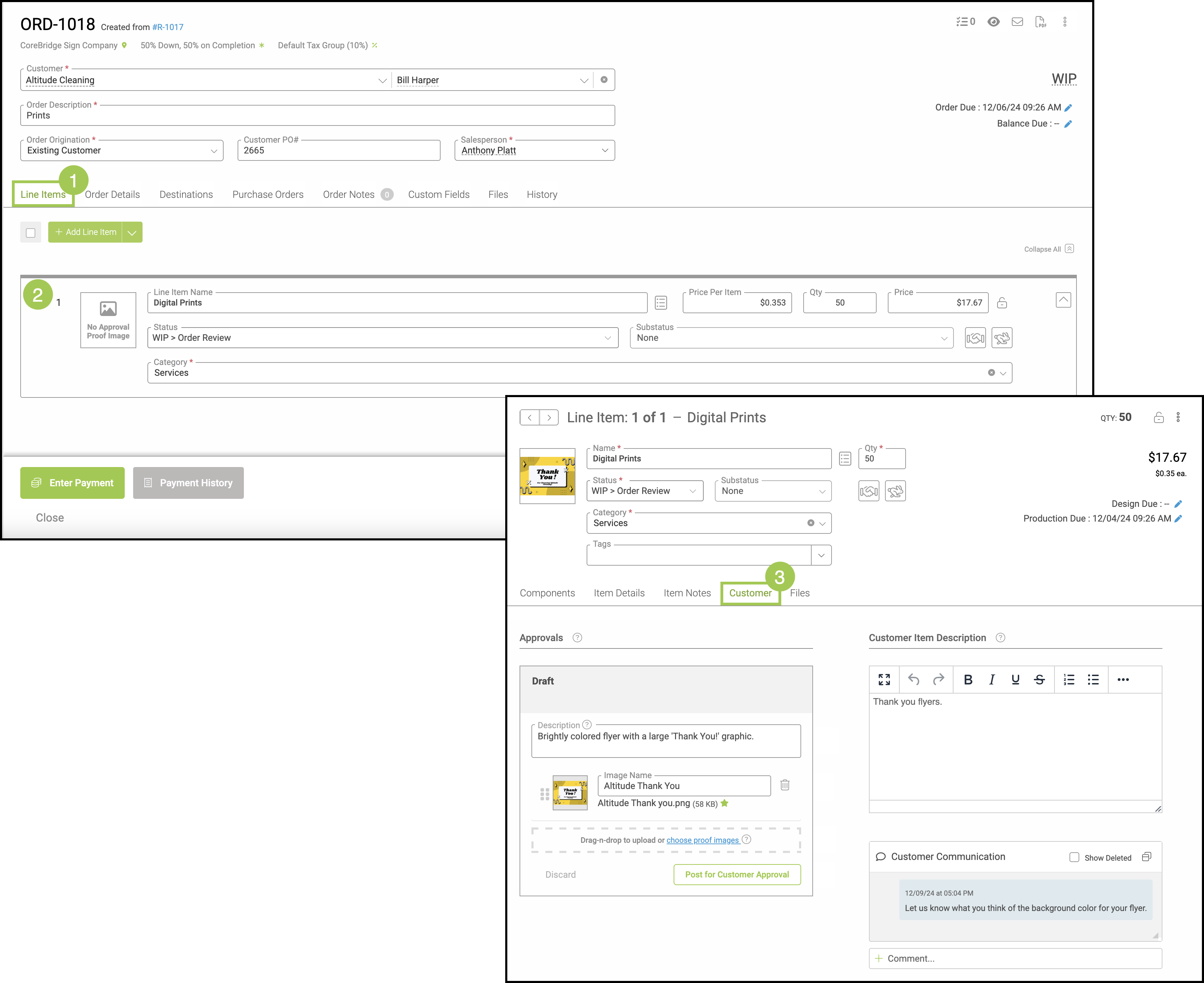 7. Click Post for Customer Approval. This will move the order into the Action Required section of the Customer Portal where this information will all be visible for Customer Approval.