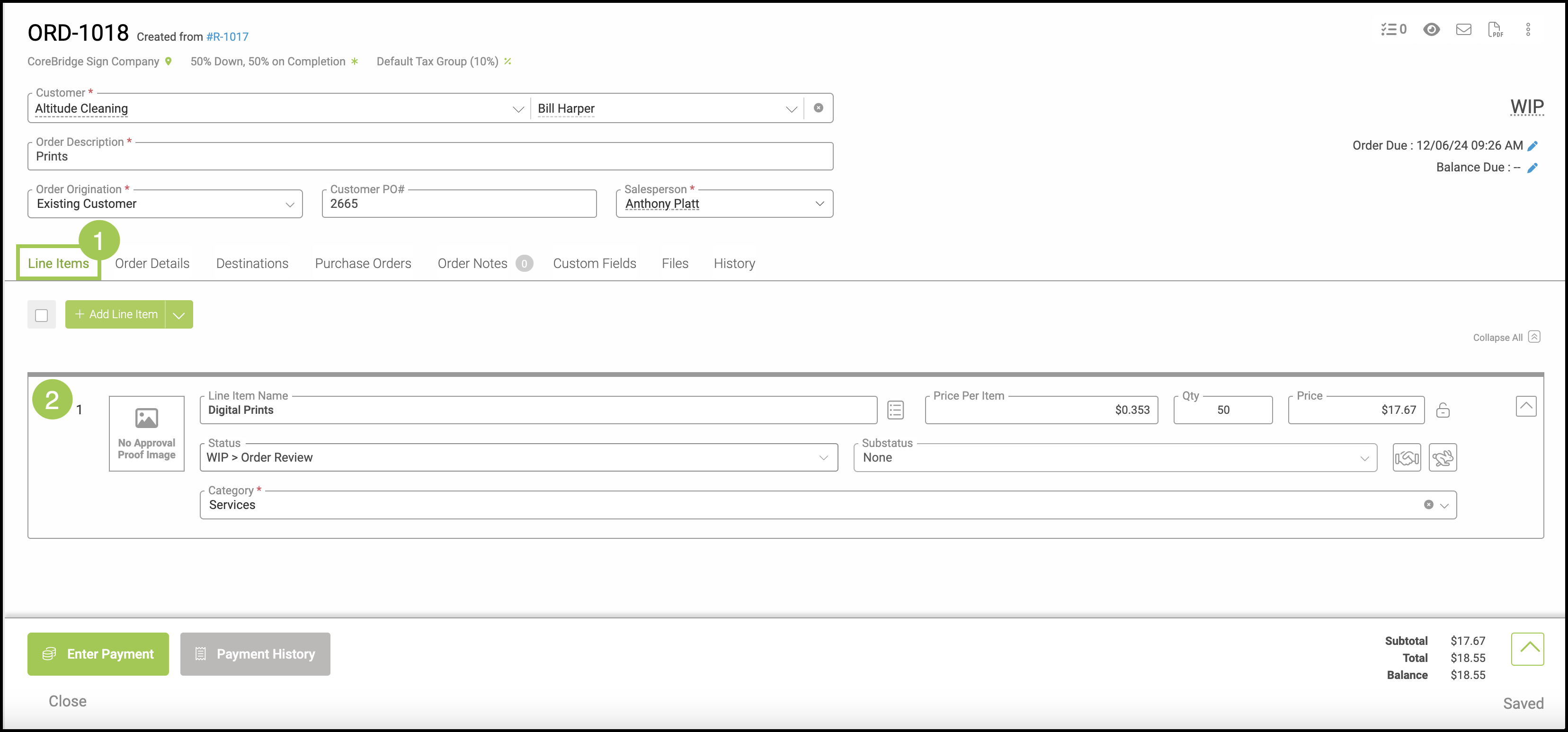 1. Select Line Items tab to see all items within the order.