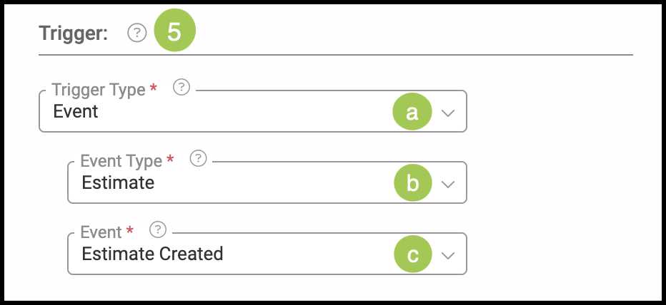 Note: This example shows the fields when Event is used as the Trigger Type.