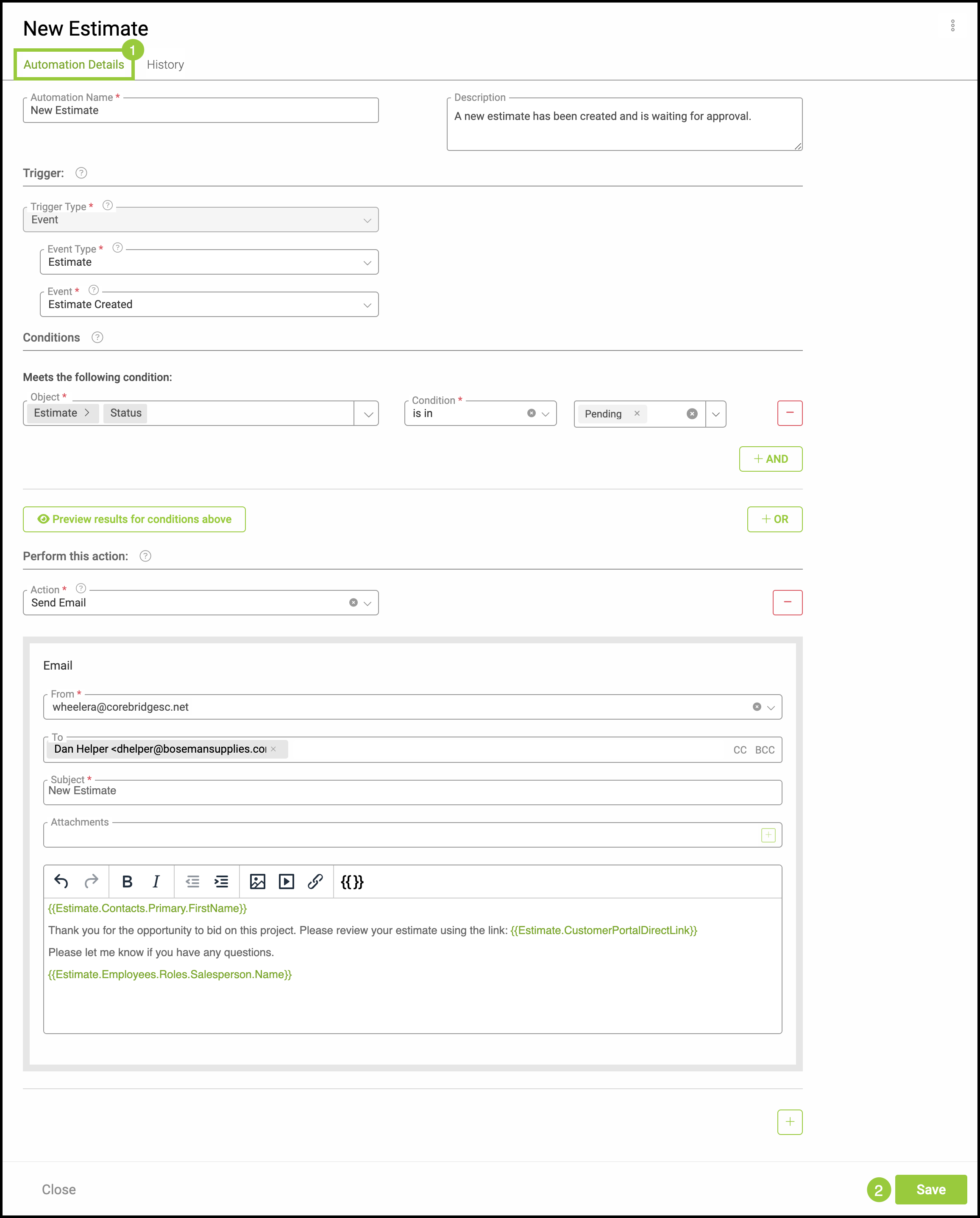 An Automation is similar to a Notification. However, an Automation is external and customer-facing. The purpose of an Automation is to help keep your customers informed and updated regarding any changes or items requiring their attention.