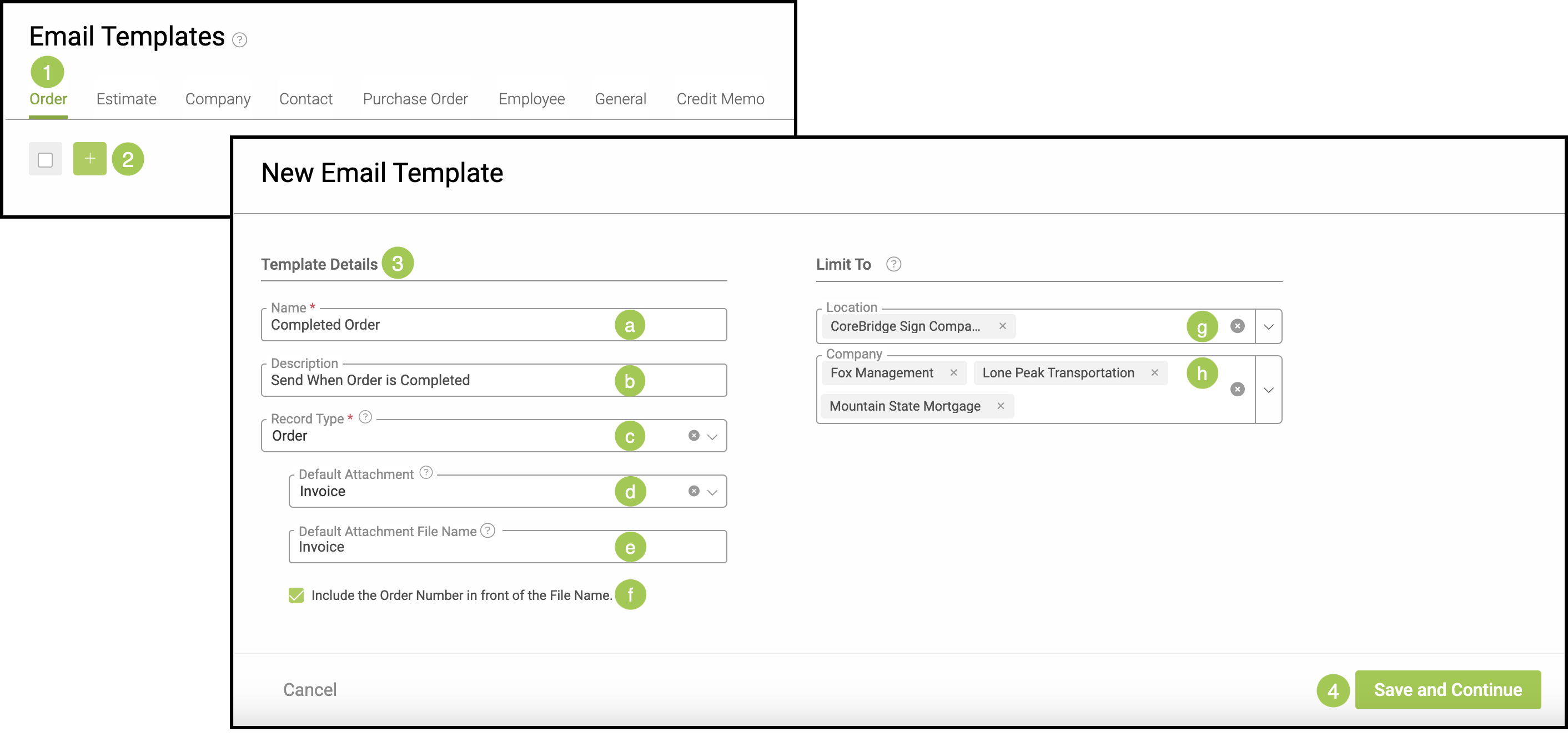 h. Company - Selecting a Company from the dropdown menu will limit the email template to only be used for that Company or Companies selected from the dropdown menu.