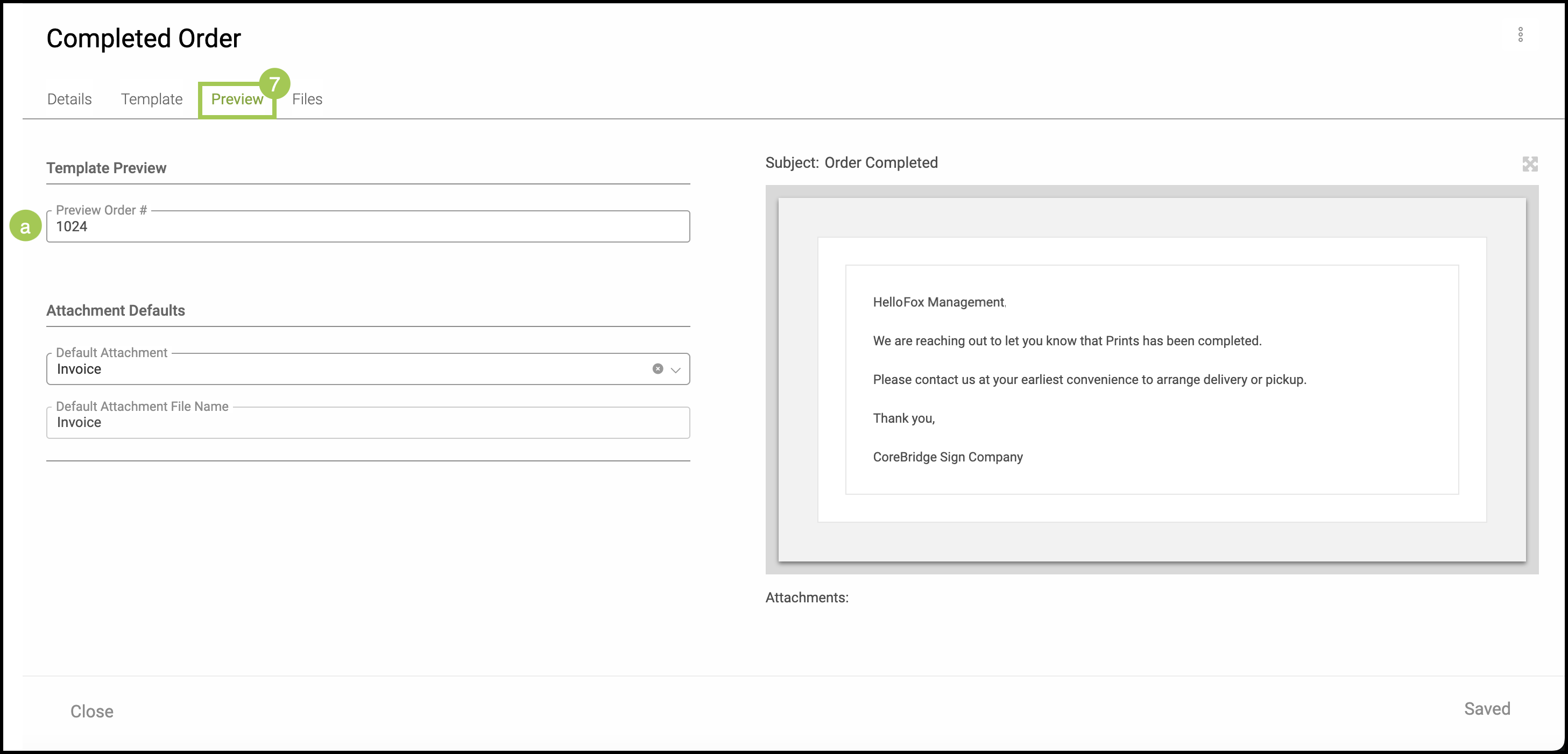 a. Preview Order # - Type the Order number here to bring up the corresponding email preview.