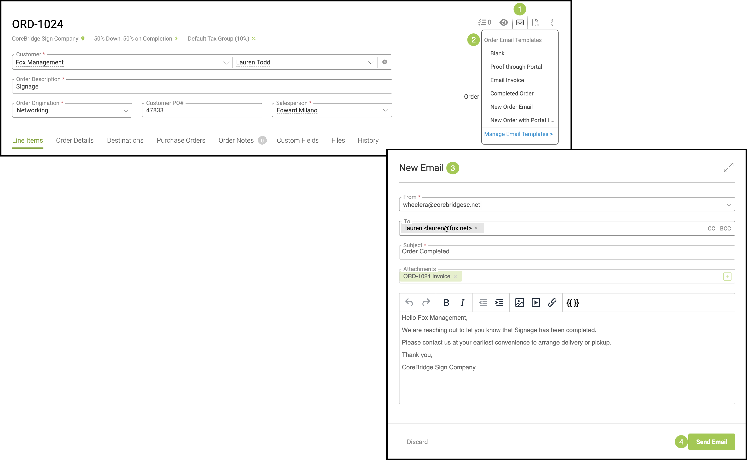 Email Templates can be used to quickly send pre-created emails to customers. This can save time and ensure that email content and formatting is consistent.