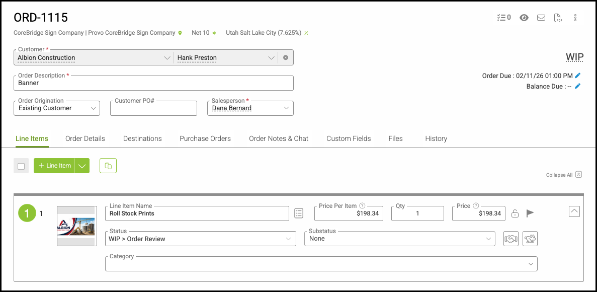 1. Select a Line Item from the Line Items tab.