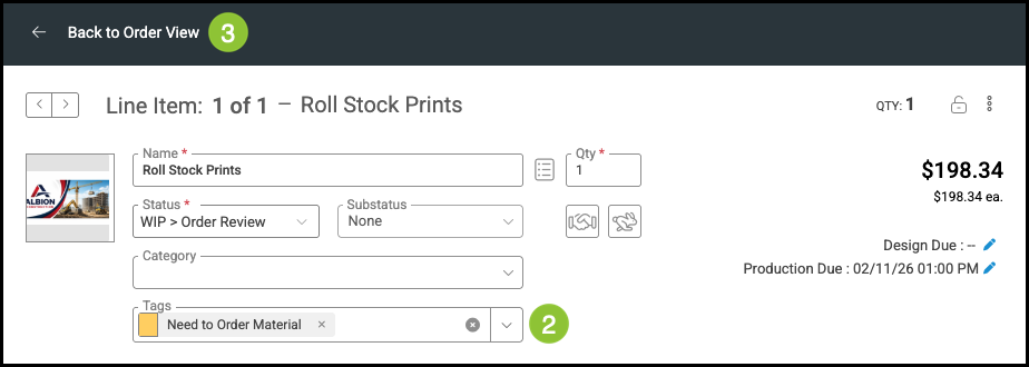 3. Select Back to Order View.