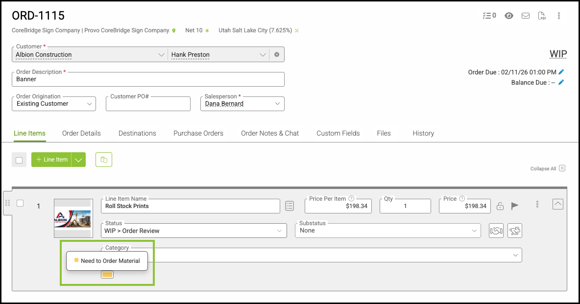 Tags are colored labels that can be assigned to orders to visually monitor progress or categorize specific groups of Estimates or Orders. These labels can be added to any line item within an Estimate or Order. For information on adding tags, please see Tag Set Up.