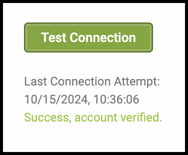 Note: When your account has been configured, you will see the words Success, Account Verified underneath Test Connection.