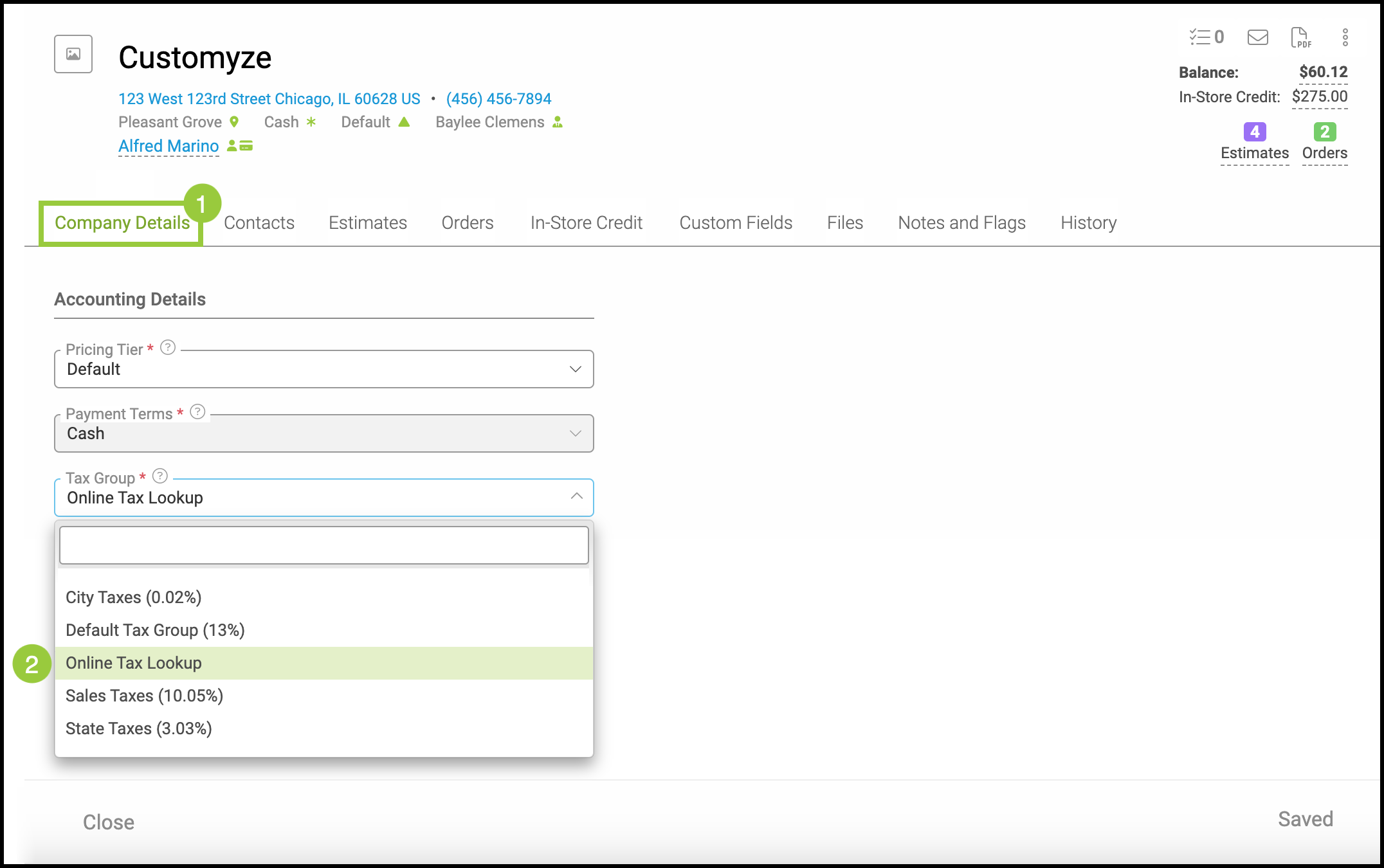 2. Use the Default Tax Group dropdown to select Online Tax Lookup.