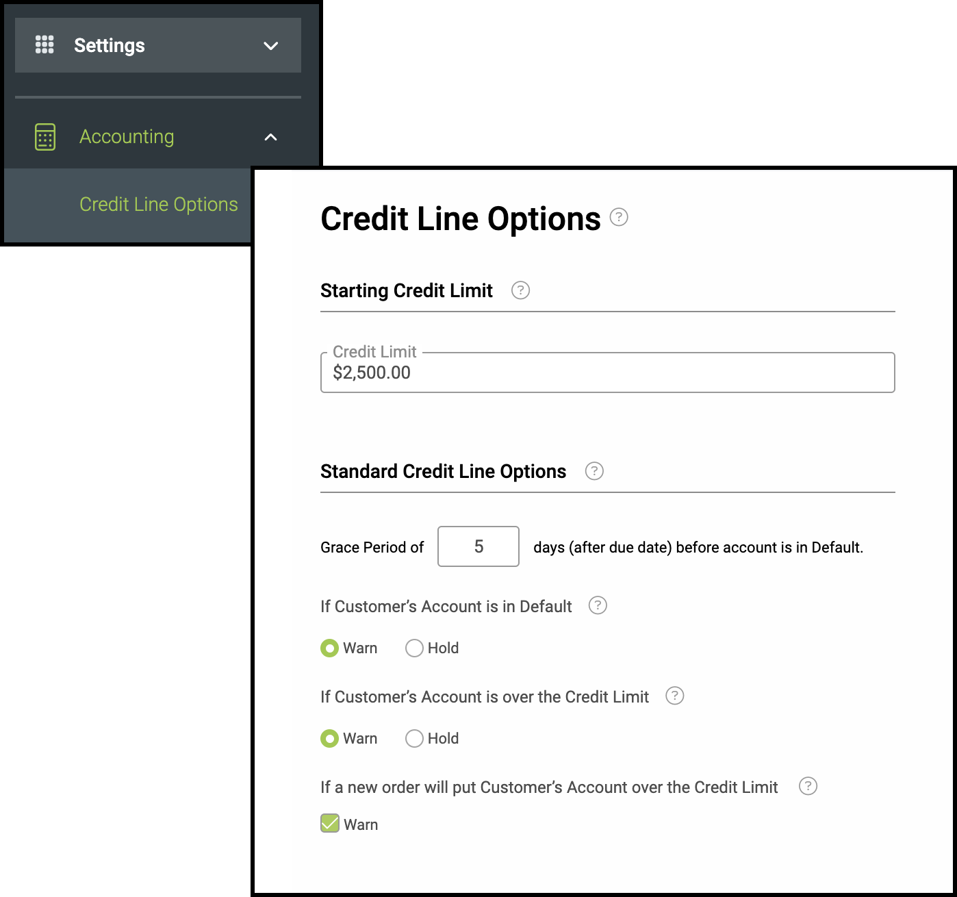 Implementing Credit Line Options can be a tool in protecting your business and setting clear parameters for your customers to adhere to. Credit Line Options allow you to predetermine what actions will occur when a customer reaches their credit limit or when their account is in default.