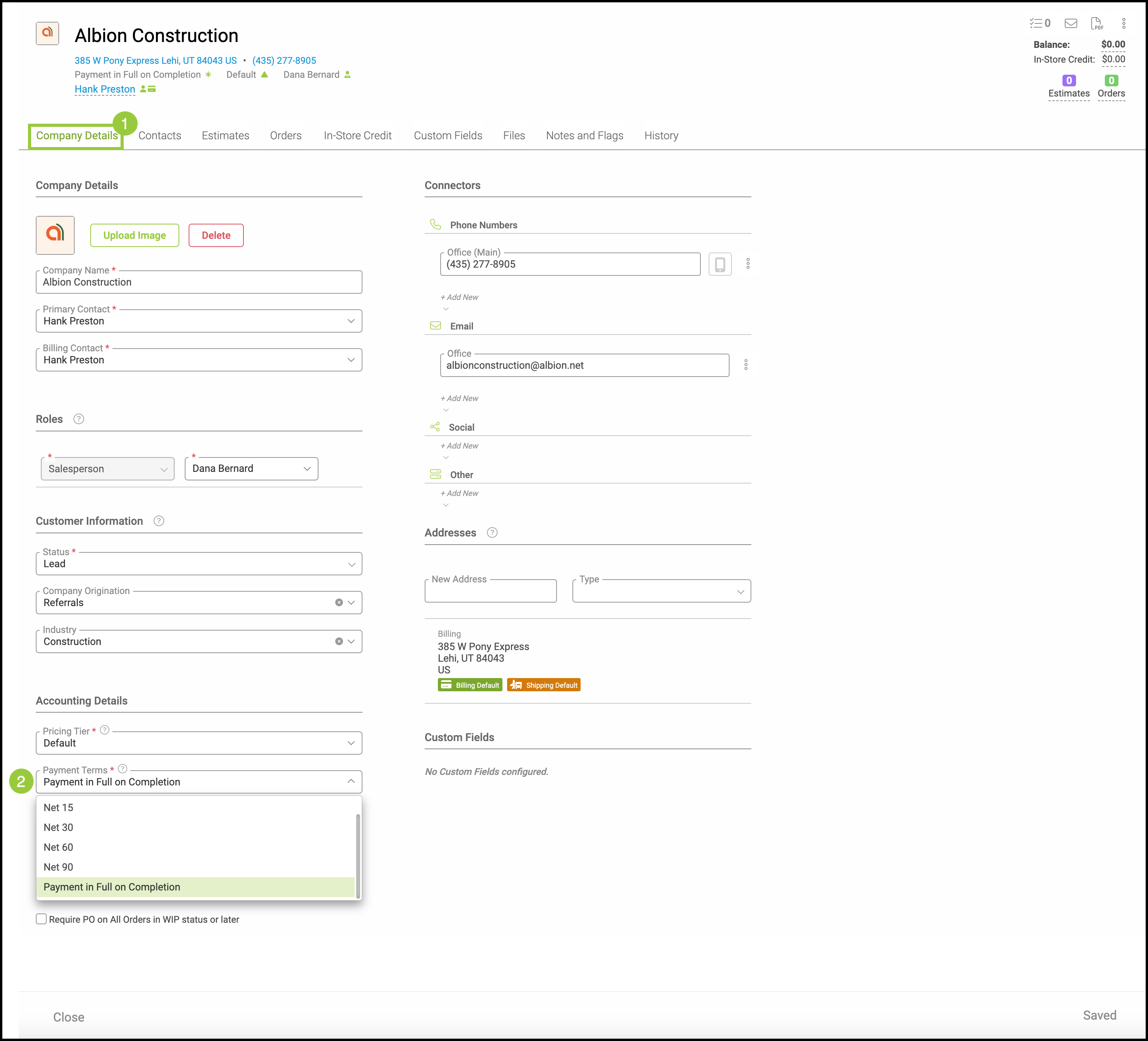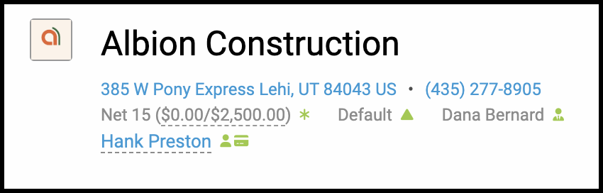 Note: The Company Heading at the top of the page provides Payment Term information at a glance, including a quick summary of how much of the Credit Limit has been used.