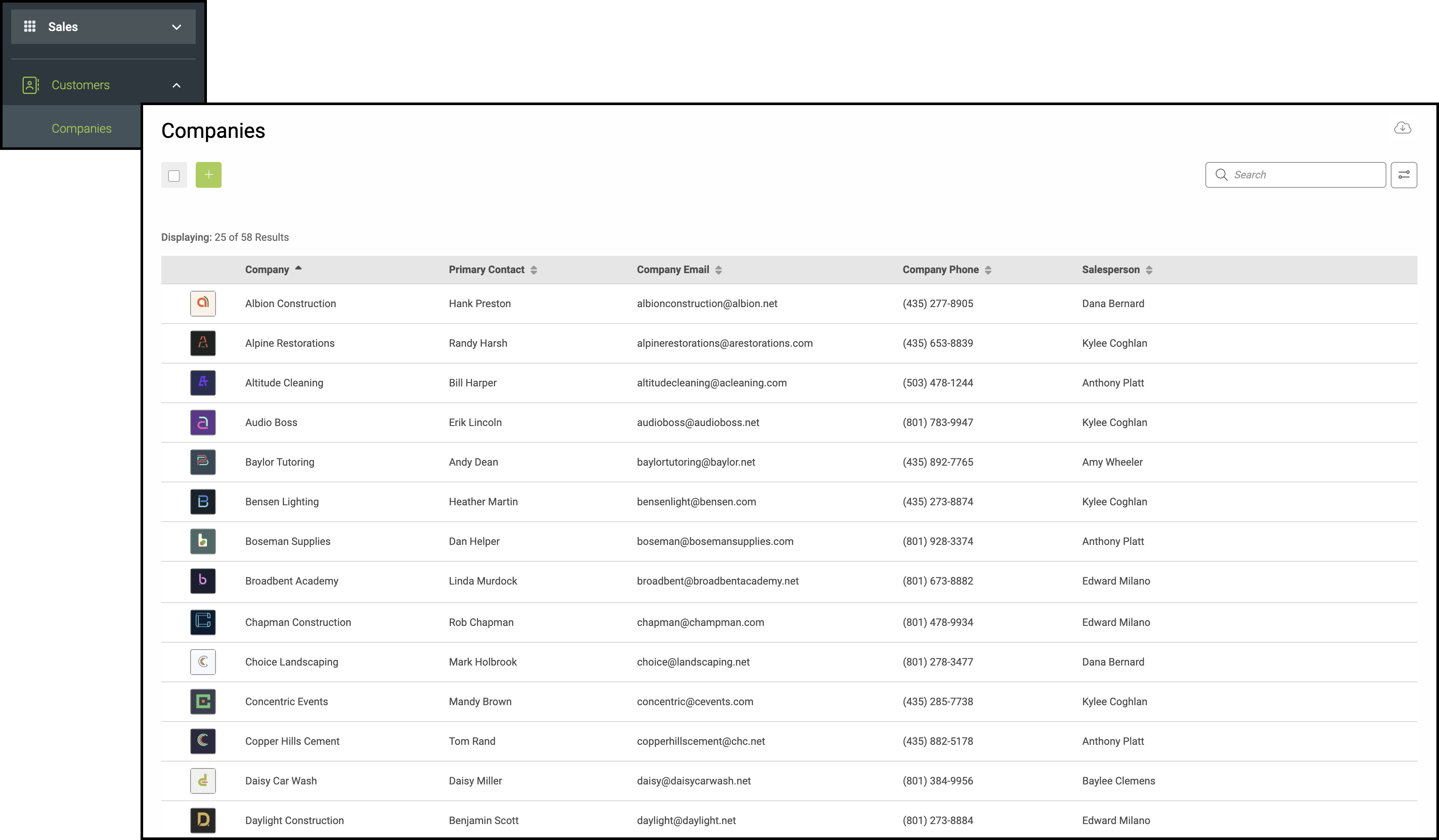 Credit Line Options can be customized for each individual company that is set to a Net Payment term. To do this, begin by navigating to Sales / Customers / Companies and selecting the appropriate customer.