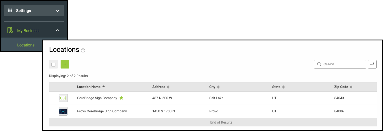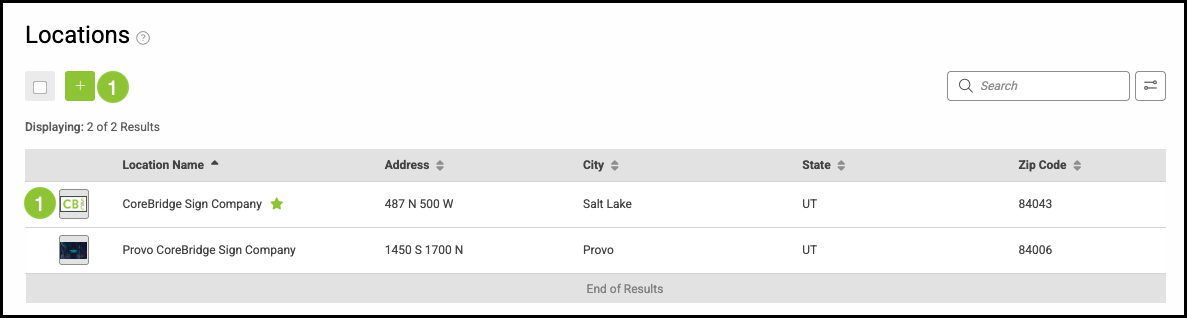 1. Click the Green Plus button to add a new Location, or, select one of the Locations to open the Details page.