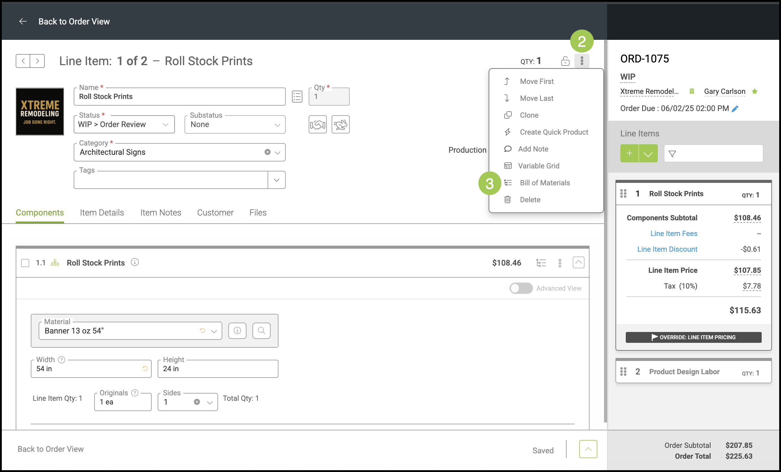Note: In this article, we will be viewing the Bill of Materials in an Order. The Bill of Materials functions and is accessed the same way in both.