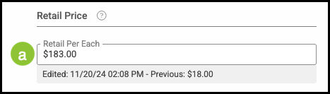 a. Retail Per Each is the price to the customer for just this Material if purchased outside of an assembly.