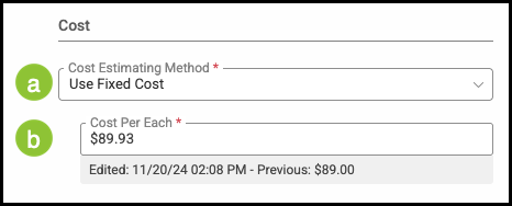 a. The Cost Estimating Method determines how the system calculates the cost of a Material.