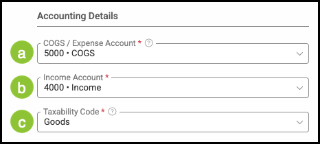 a. COGS / Expense Account reflects the account the Material will be billed to.