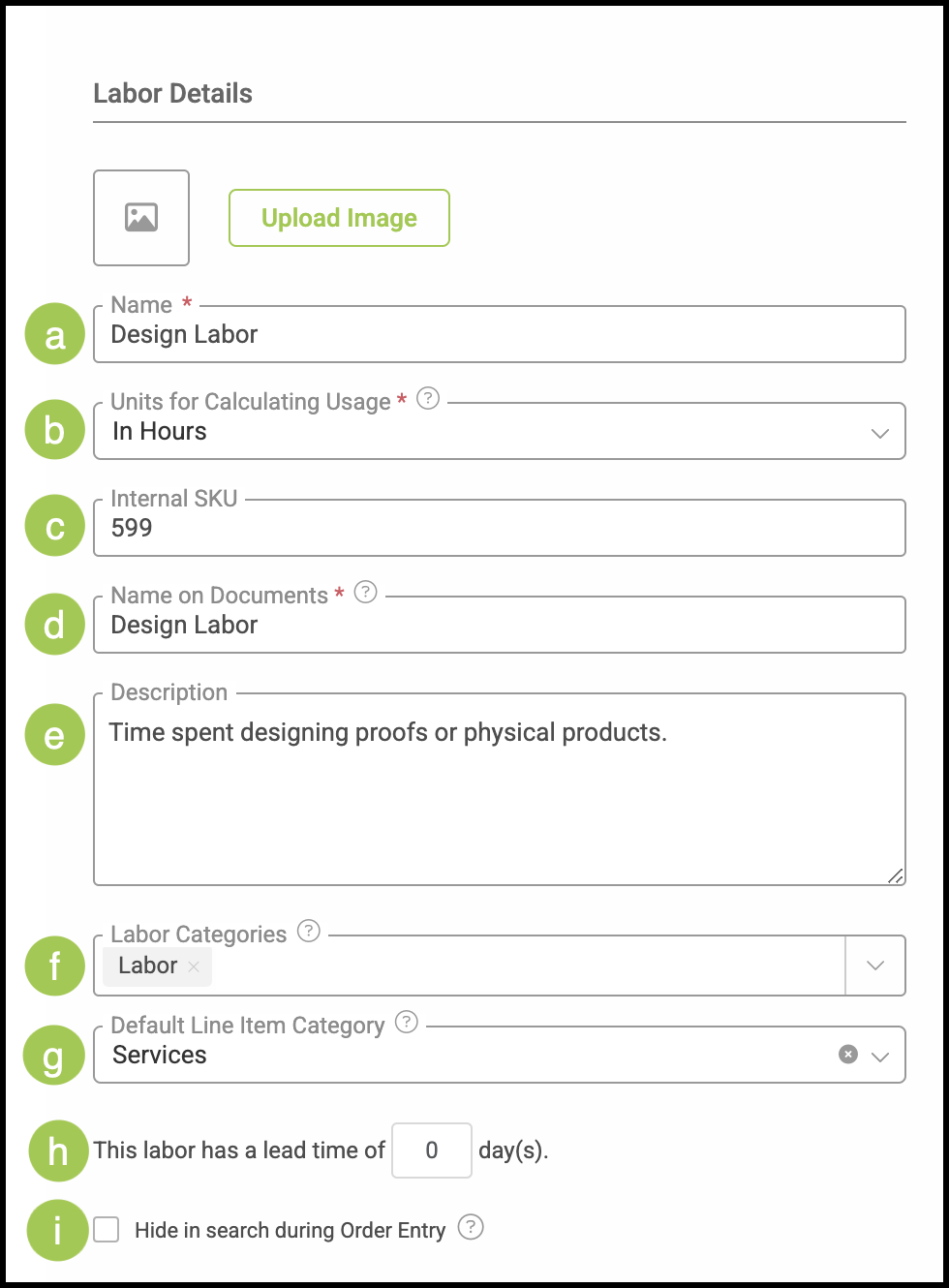 a. Image - Click Upload Image if you would like to include one for this Labor.