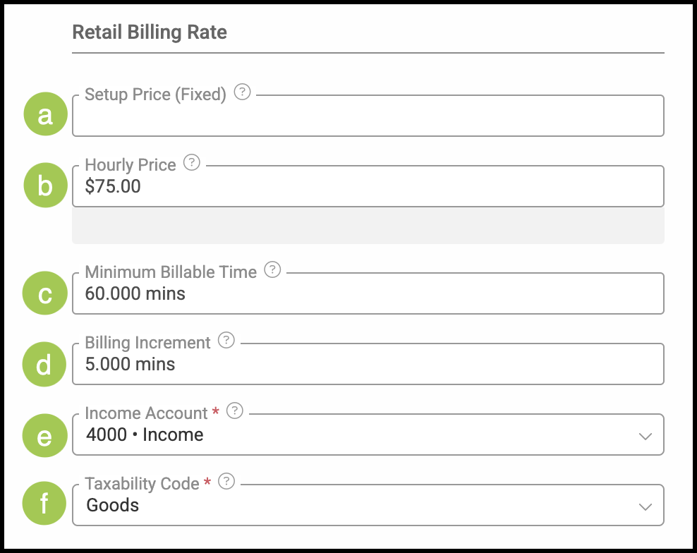 d. Billing Increment - This will allow you to round up to the next nearest increment of time.
