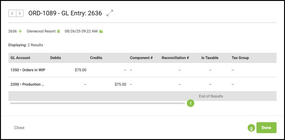 The GL Entries subtab shows all of the financial changes to the Order with the most recent at the top.