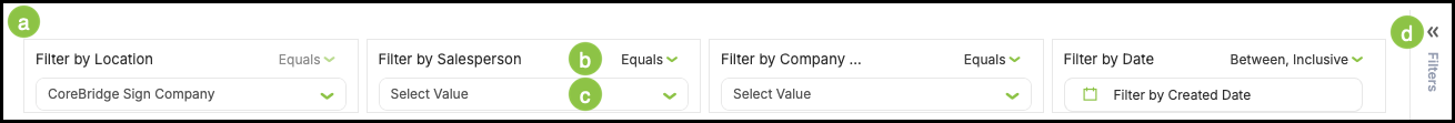 b.This allows you to select whether the filter is set to Equals or Does not equal.