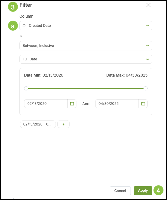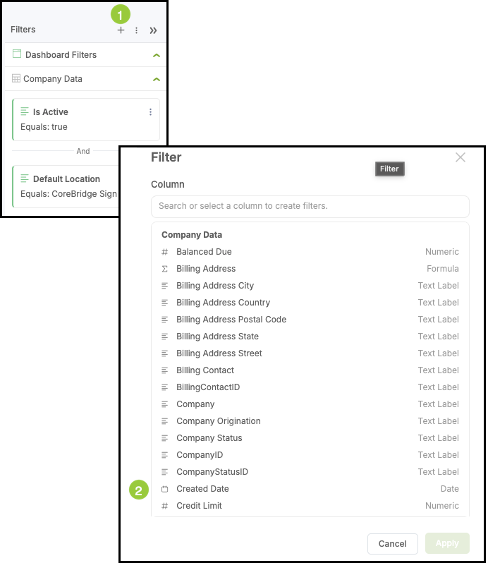 1. Click the Plus button in the Filter Side Panel.