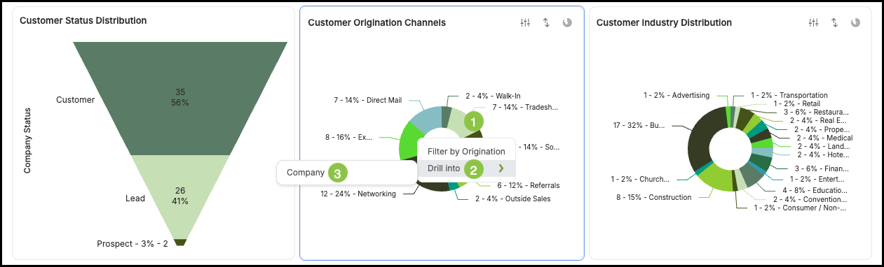 - Widgets on module dashboards will reflect the same information found in Reports.