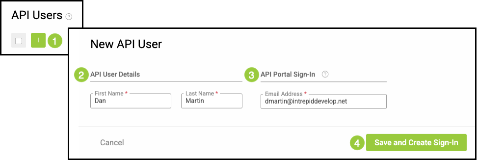 Note: This User account is used only for API authentication. After creation, the developer can log in to the API Portal to view endpoints and documentation using these Sign-In details.