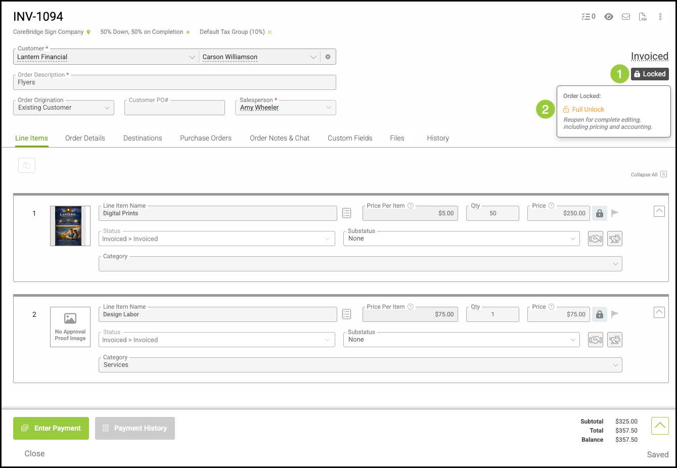 - Using Full Unlock on Invoiced Orders