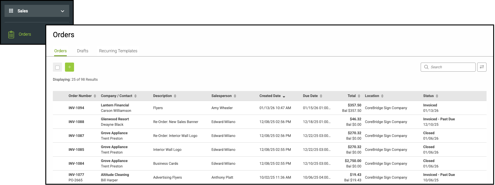 Note: Invoiced Orders with partial payments will show the dollar amount in this pop-up. For an example, see above under