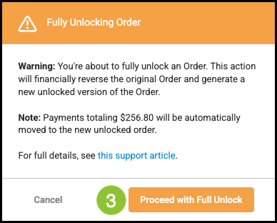 Full Unlock is designed for scenarios where changes are needed after an Order has reached a locked state. This feature replaces the previous unlock behavior for these Orders.