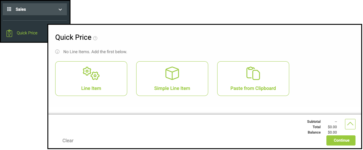 Navigate to Sales / Quick Price.