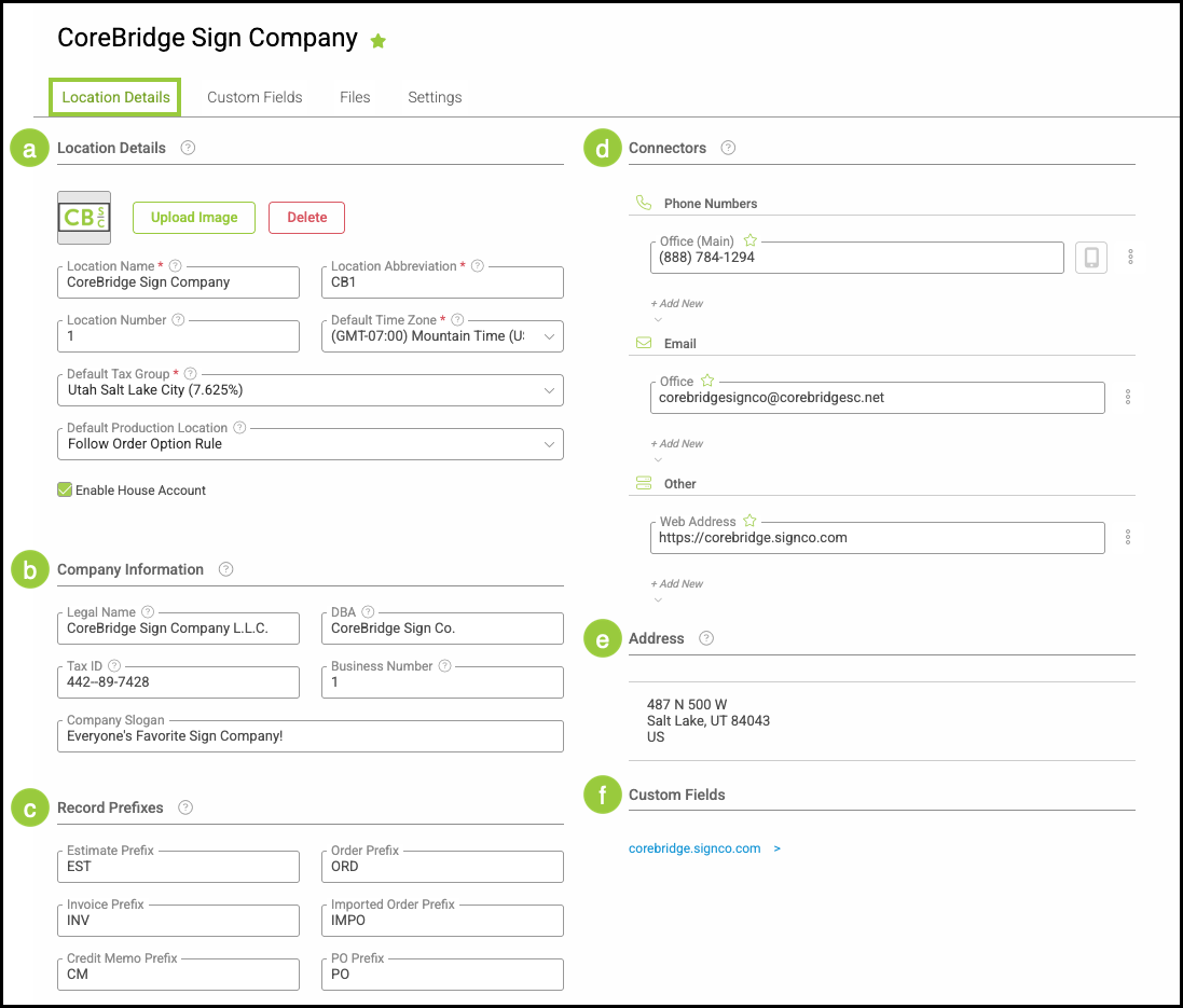 Locations define how your business is organized within the system. Each Location stores key information such as contact details, addresses, tax and time zone defaults, record prefixes, and operating hours. Locations also help distinguish records when multiple sales centers or offices are used.