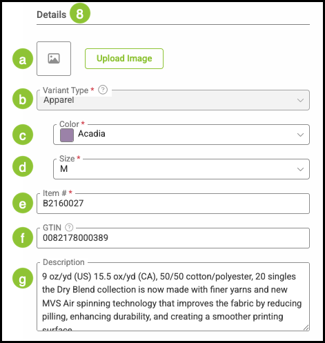 Note: Apparel is the currently available Variant Type. Additional Variant Types can be configured with assistance from support by reaching out to supportdesk@corebridge.net.