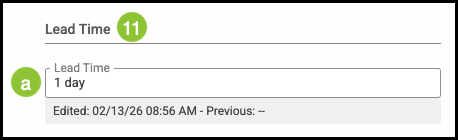 11. Enter the Lead Time.