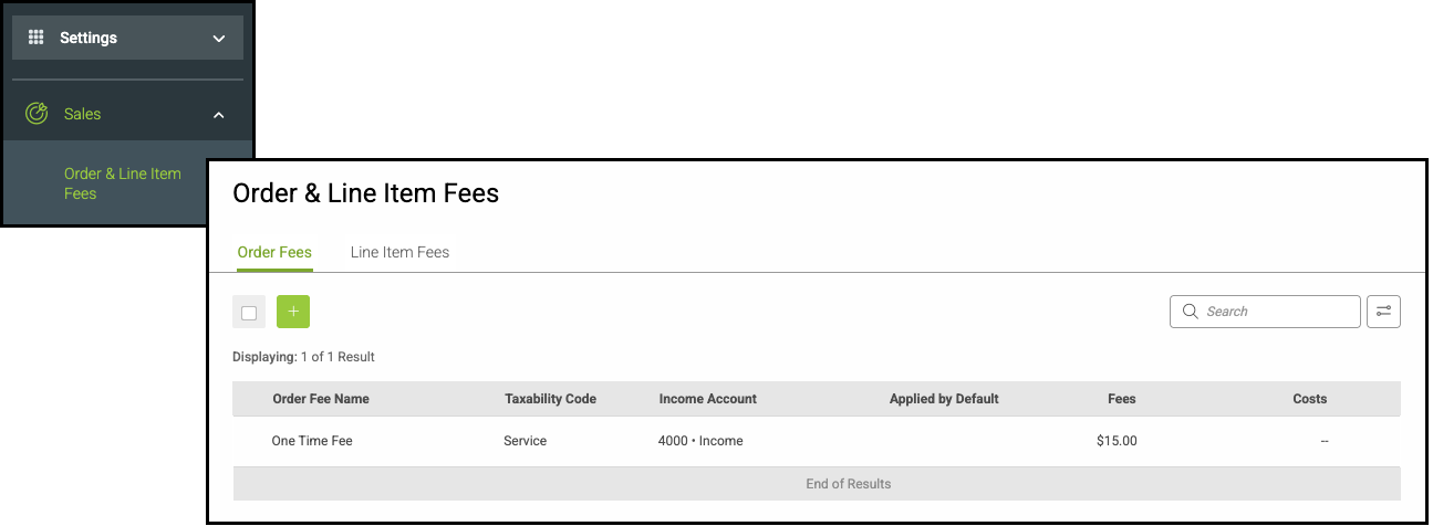 Navigate to Settings / Sales / Order & Line Item Fees.