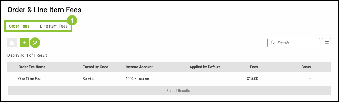 Notes: An Order Fee applies to the full Order total, while a Line Item Fee is tied to a specific Line Item only.
