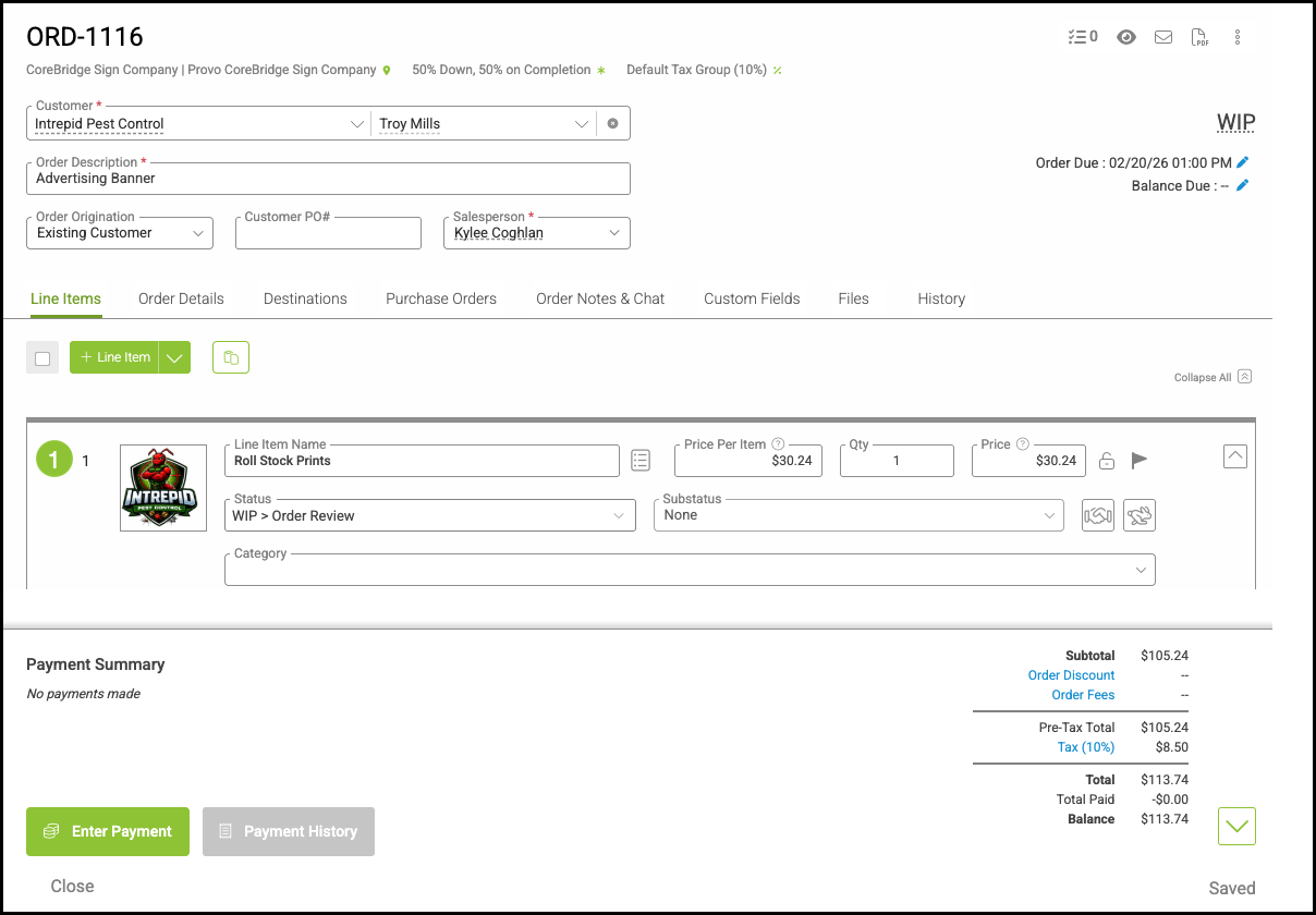 Line Item Fees may be applied directly through an individual Line Item, or from the Estimate/Order Payment Summary section.