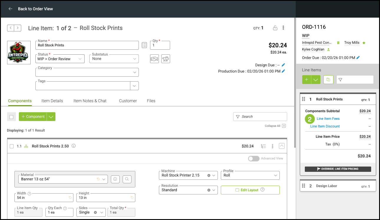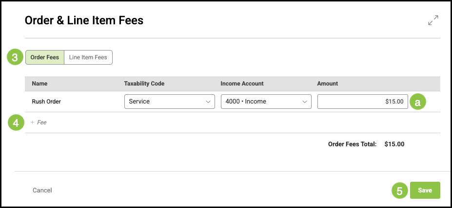 Order and Line Item Fees allow you to apply additional charges to an Order either at the overall Order level or to individual Line Items. These Fees can be used for costs such as rush processing, handling, setup, environmental surcharges, or other service-related charges that may not be built directly into product pricing.
