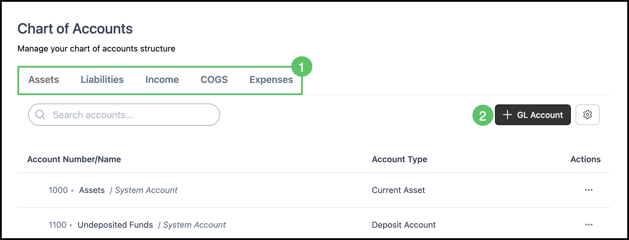 The chart of accounts is a foundational element in CoreBridge, providing a structured framework for organizing and categorizing financial transactions. Understanding the basics of the chart of accounts can assist with accurate accounting and financial reporting. There are preset accounts in the system that are labeled as System Accounts. These accounts are necessary for proper accounting and cannot be deleted or edited. The system does, however, allow for Custom Accounts to be added to fit your individual business needs.