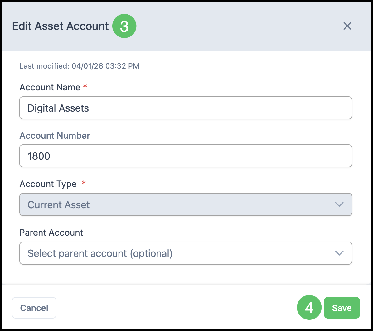 Note: Selecting a Parent Account here will make this account a sub-account.