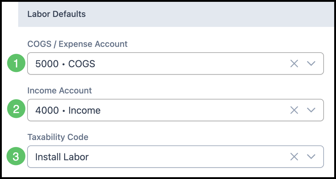 Note: Accounts and taxability codes can be changed for individual labors as needed.