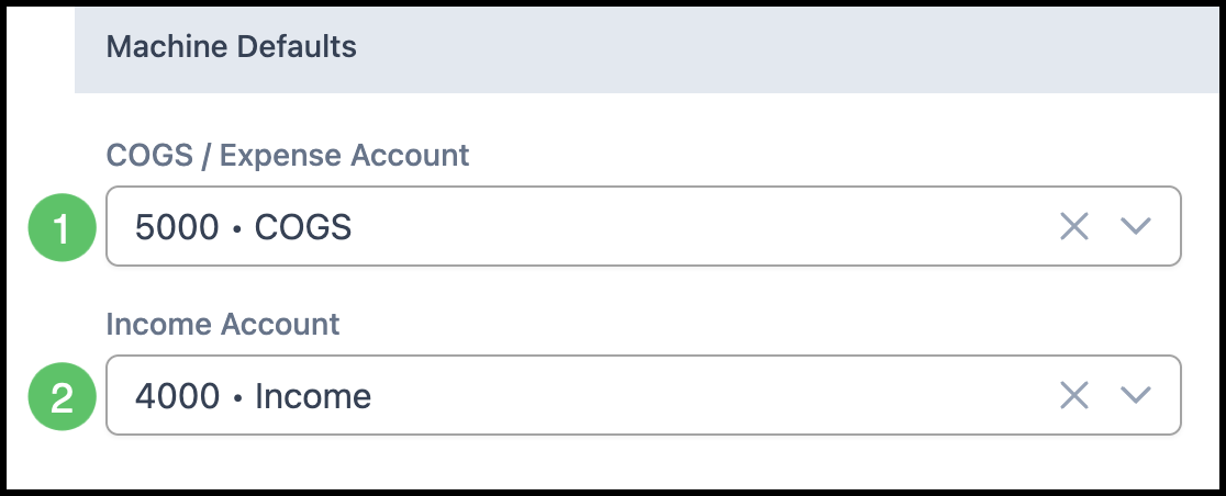 Machines are used to create items. These accounts will be the default when new machines are entered into the system.