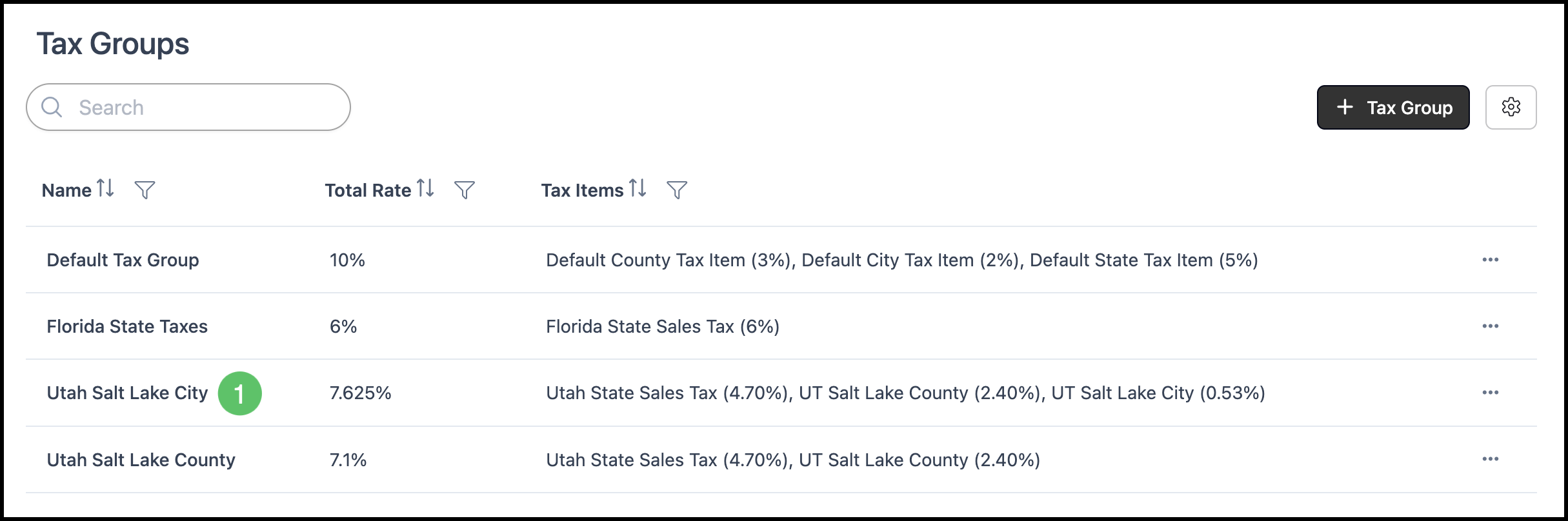 1. Find the Tax Group in the list and click on that row.
