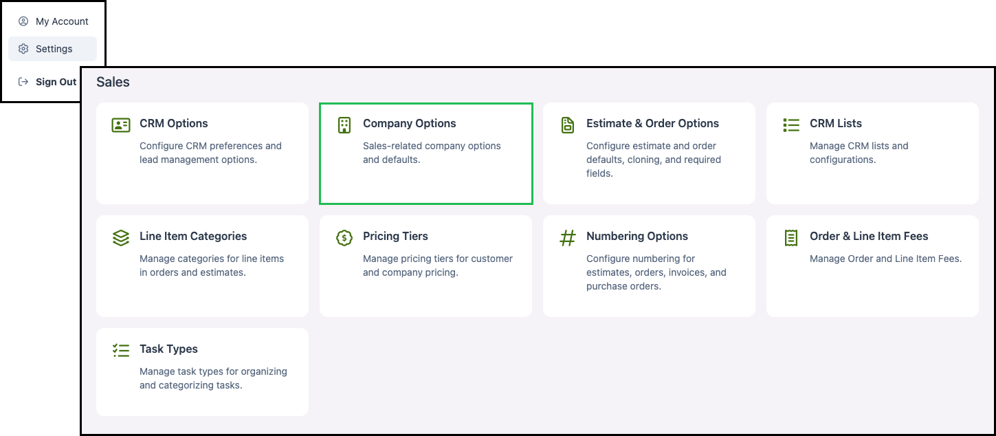 Company Options allow you to have more flexibility on what options will be displayed, enabled, and required for your Customers. These options and preferences can be updated at any time.