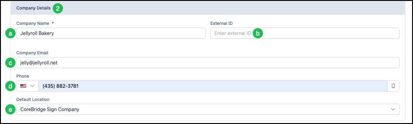 Creating a company in CoreBridge is one of the first steps to creating orders, managing your business, and efficiently communicating with clients. Company profiles are one of the basic building blocks of the system and are needed to run your business.