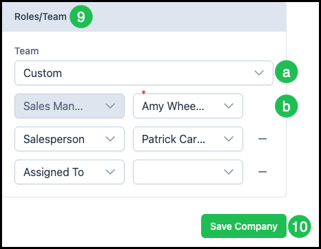 a. If you select Custom Teams, you can add employees to Roles from this screen. If you choose a preselected Team, the Roles and employees will be auto-filled which cannot be edited at the company level.